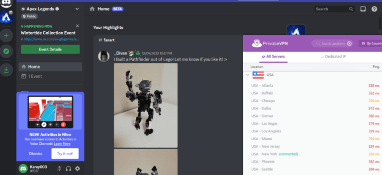 - 服务器被 Discord 标记:Discord 可能会标记服务器违反其条款和服务,从而导致 Discord VPN 停止工作。如果是这种情况,请退出 Discord,断开与 PrivateVPN 的连接,然后连接到新服务器。然后,重新打开不和谐看看它现在是否有效。