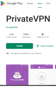 - 去你的官方手机商店并搜索 PrivateVPN。下载并安装该应用程序。