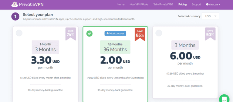 - 没有免费试用:不幸的是,PrivateVPN 不提供免费试用。但如果你仍然想尝试一下,那就买这些私人VPN折扣享受一个30 天退款保证。
