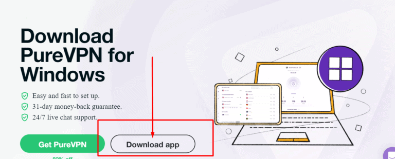 - 下载并安装 PureVPN 应用程序在您的设备上。我使用 Windows PC 作为示例。
