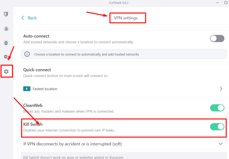 Surfshark 还有一个互联网终止开关这很容易启用。
