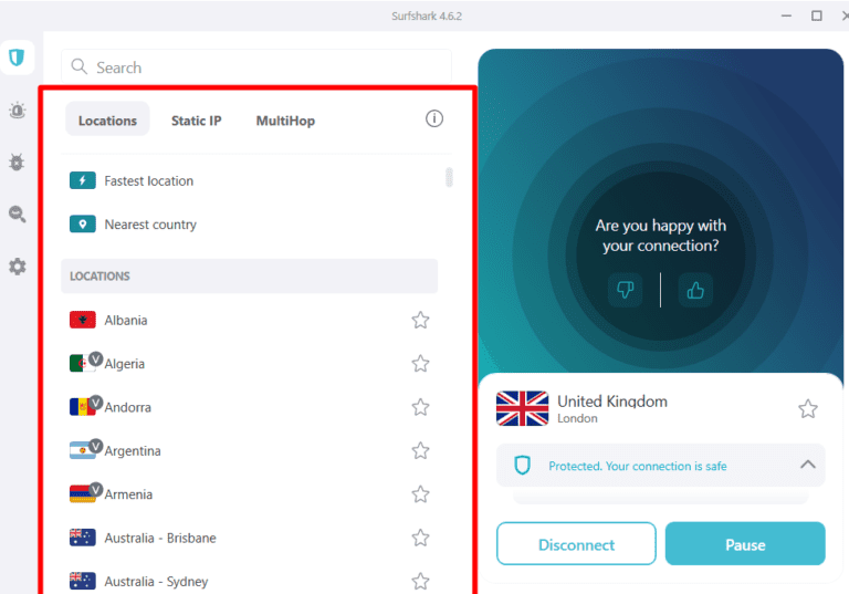 更好的是,PIA 在 84 个地点提供服务器,靠近Surfshark。