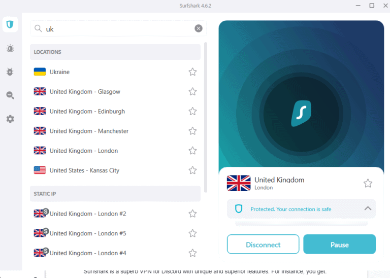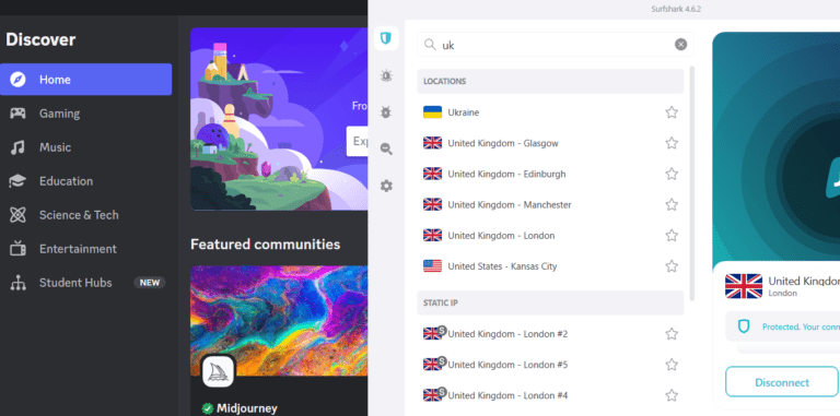 事实上,我在访问中国时可以通过 Surfshark 的伦敦服务器顺利访问 Discord。
