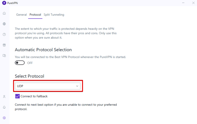 PureVPN 使用混淆功能,自动与 OpenVPN UDP/TCP 配合使用来隐藏您的 VPN 流量,因此看起来您不像在使用 VPN。