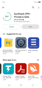 - 访问您设备的应用程序商店,搜索 Surfshark 应用程序,然后点击“安装”。在本次演示中,我将使用我的 Android 设备。