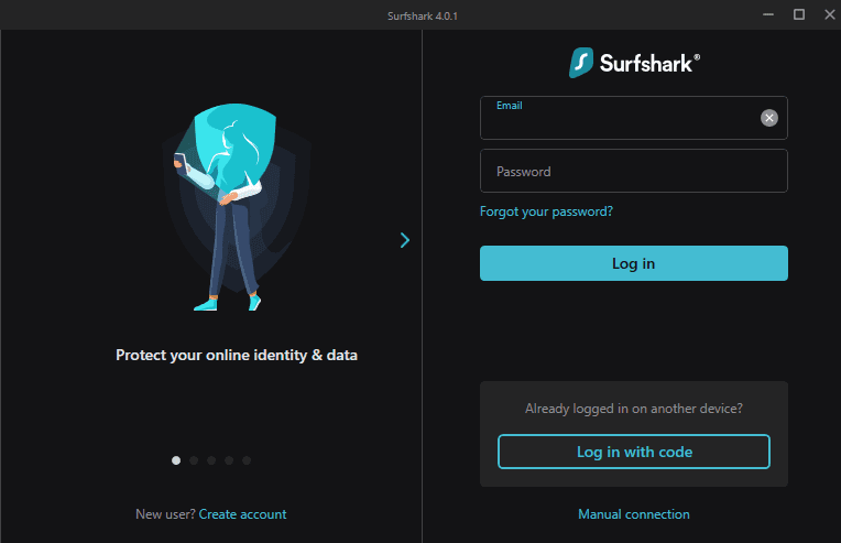 - 轻敲 ”登录”,然后在 Surfshark 应用程序中输入您的帐户凭据。