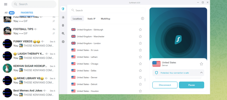 Telegram 是一款出色的消息应用程序,具有许多功能,但如果使用 Surfshark,效果会更好。借助 Surfshark,您可以绕过审查、访问被阻止的内容并确保数据安全。