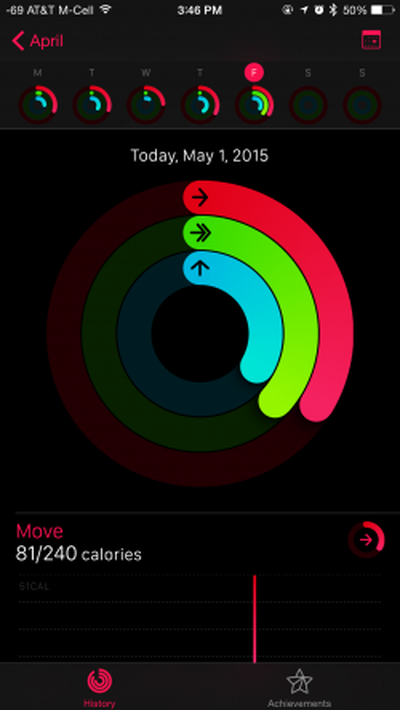 - 或者,您可以在 iPhone 上的“活动”应用程序上查看信息。一些表盘将“活动”作为复杂选项,让您可以随时查看微型活动环,并从那里点击即可访问“活动”应用程序。