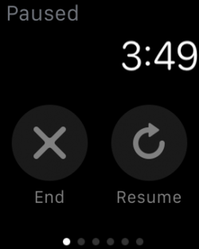 您可以随时用力按下显示屏来暂停锻炼。如果您在锻炼期间因任何原因停止并且不想跟踪心率等信息,请执行此操作。点击继续以继续。