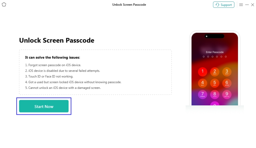 步骤 3.单击“立即开始”>“立即解锁”以开始关闭“屏幕时间”密码。