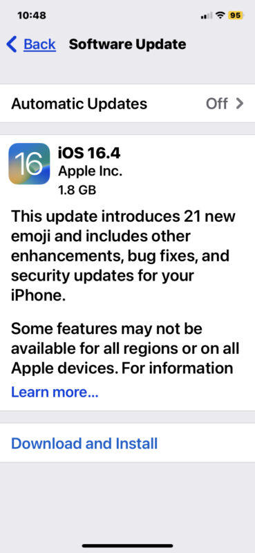 - 对于 iOS 16.4 / iPadOS 16.4 选择“下载并安装”