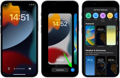 Apple 创建了多种可定制的锁屏壁纸类型供您选择,包括随机照片、表情符号背景、Apple Collections 和颜色,以及反映实时数据的动态天气和天文屏幕。
