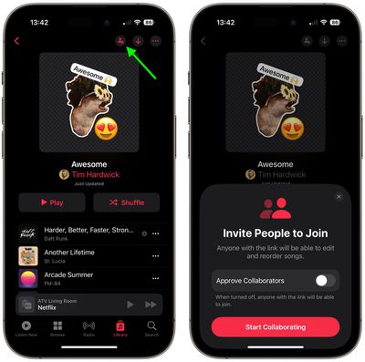借助协作播放列表,Apple 现在允许您使用任何现有的播放列表或创建新的播放列表,然后邀请其他人加入以添加歌曲并收听。
