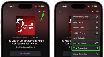在现已推出的 iOS 17.4 中,Apple 已将音频转录添加到 iPhone 的播客应用程序中,这意味着您现在可以一边朗读您最喜爱的播客,一边朗读它们。