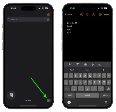 您不仅可以通过计算器应用程序访问数学笔记 - 您还可以使用任何新的或现有的笔记直接在笔记应用程序中使用该功能。