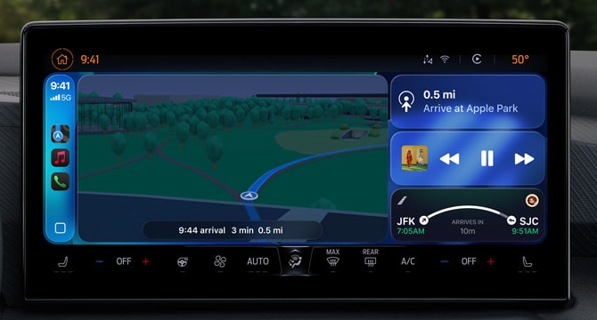 iOS 18 CarPlay:仅支持中央信息娱乐显示屏,使仪表组由汽车制造商的本机软件控制。