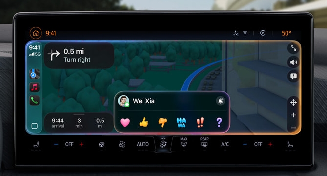 - 第三方应用程序支持:导航、停车和餐厅应用程序现在享受全面的 CarPlay 优化,确保在不离开 CarPlay 生态系统的情况下流畅交互。
