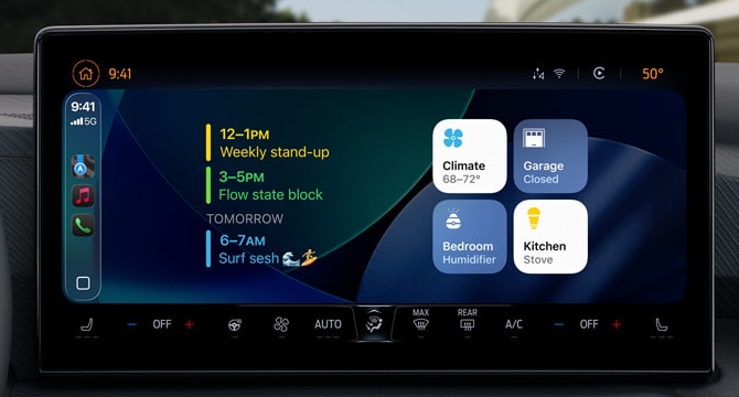 iOS 18 CarPlay:仅限于地图、音乐和消息等信息娱乐功能。气候和座椅调节等汽车专用控制装置不可用。