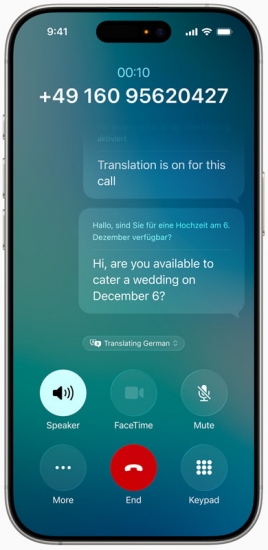- 消息、FaceTime 和电话中内置了实时翻译。