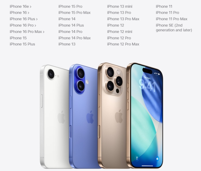 iOS 18:支持 iPhone Xs 及更新机型。然而,先进的 Apple Intelligence 功能需要更新型号的 iPhone 15 Pro 系列及更高版本。