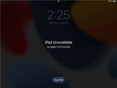 如果您得到“iPad 不可用” 屏幕上出现提示信息,表示您已进入