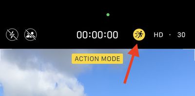 - 点击动作模式按钮(看起来像一个人在跑步)位于取景器上方,使图标变成黄色。