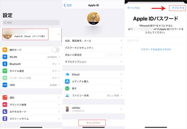 - 输入您的 Apple ID 和密码,然后关闭“查找我的 iPhone”。