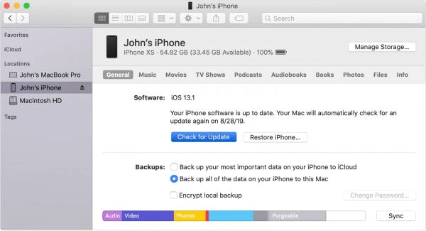步骤 2. 等待 iTunes 检测到您的设备,找到并单击它。转到设置并检查更新。