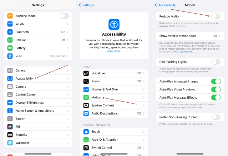 禁用或最小化运动效果、透明度和背景动画可以减轻 iPhone 处理器和图形引擎的工作负载。更少的视觉效果意味着设备花费更少的电量来呈现精美的过渡,从而为应用程序性能留下更多的资源。