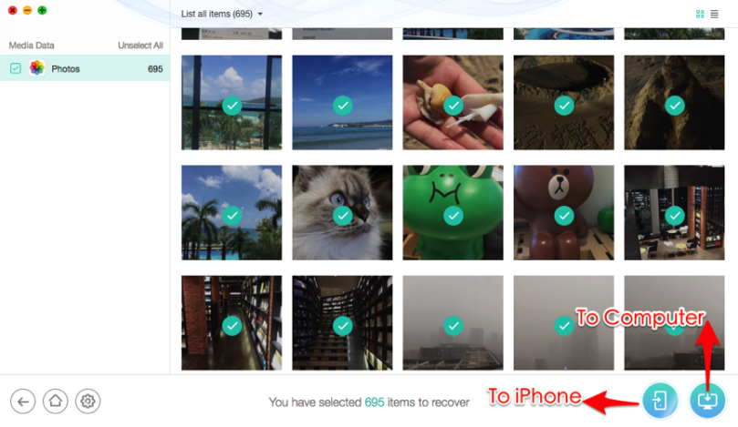 步骤4。预览您扫描并恢复所选数据的数据。您可以选择恢复到计算机或IDEVICE。