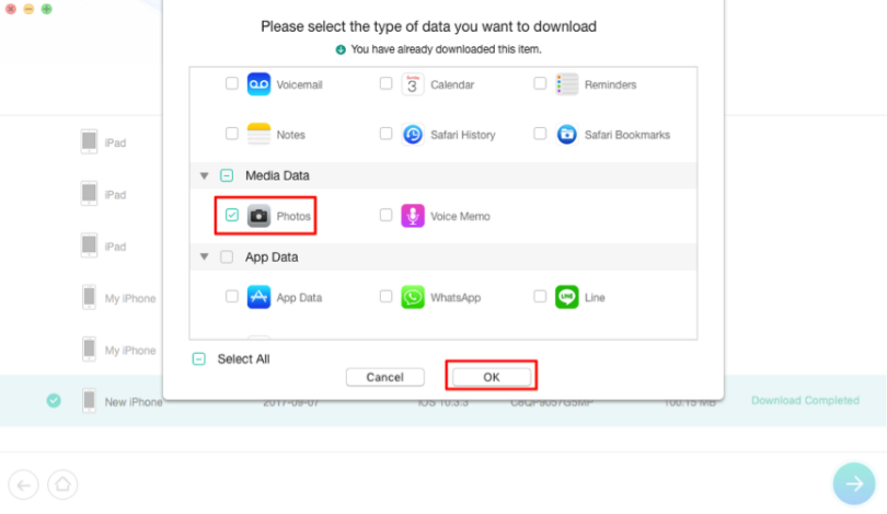步骤3。扫描iCloud备份内容并选择所需的数据(例如照片)