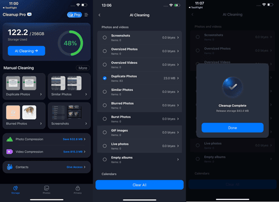 就是这样!这样,您就可以使用 Cleanup Pro 应用程序快速释放 iPhone 存储空间。