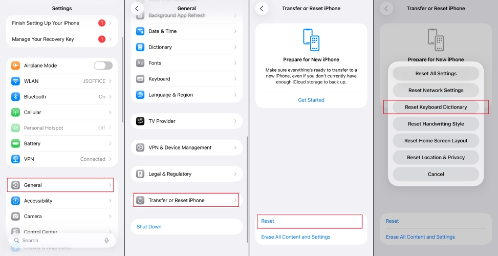 有时问题是键盘字典中的错误或冲突。在这种情况下,重置键盘词典可以帮助恢复语音转文字功能的正常运行。