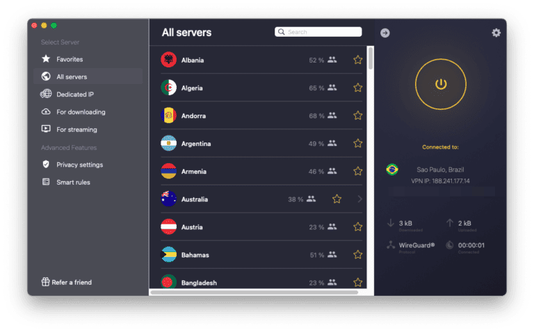 它可以满足任何游戏玩家对游戏 VPN 的需求,其功能包括游戏优化服务器、专用 IP 地址、DDoS 攻击防御,等等。