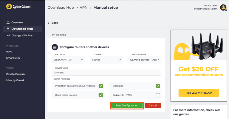 如果您喜欢在多个设备上玩游戏,请安装路由器上的 CyberGhost推荐这样覆盖整个家庭。以下是有关如何执行此操作的分步指南: