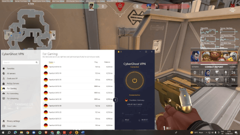 我通过玩Valorant几个小时来评估CyberGhost的游戏性能,它超出了我的预期。有没有明显的延迟或丢帧。