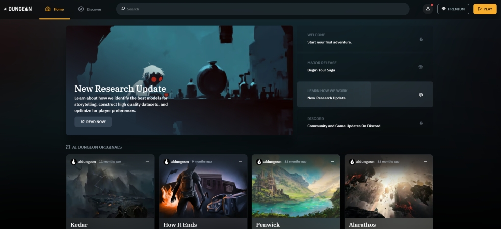 人工智能地下城AI Dungeon 最适合叙事性故事讲述和角色扮演,它使用 GPT 驱动的响应来生成互动小说。