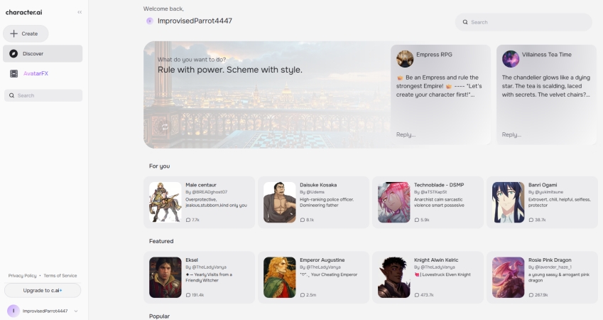角色人工智能是一个强大的替代方案,允许用户创建人工智能角色并与之交互。它提供公共字符库和可定制的对话。