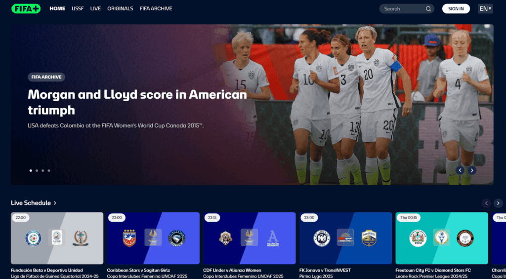 作为 FIFA 官方流媒体服务,这代表了足球迷最安全的免费 StreamEast 替代方案。虽然完全合法且免费,但一些直播游戏面临地理封锁限制,并且流媒体质量最高为 1080p 分辨率。