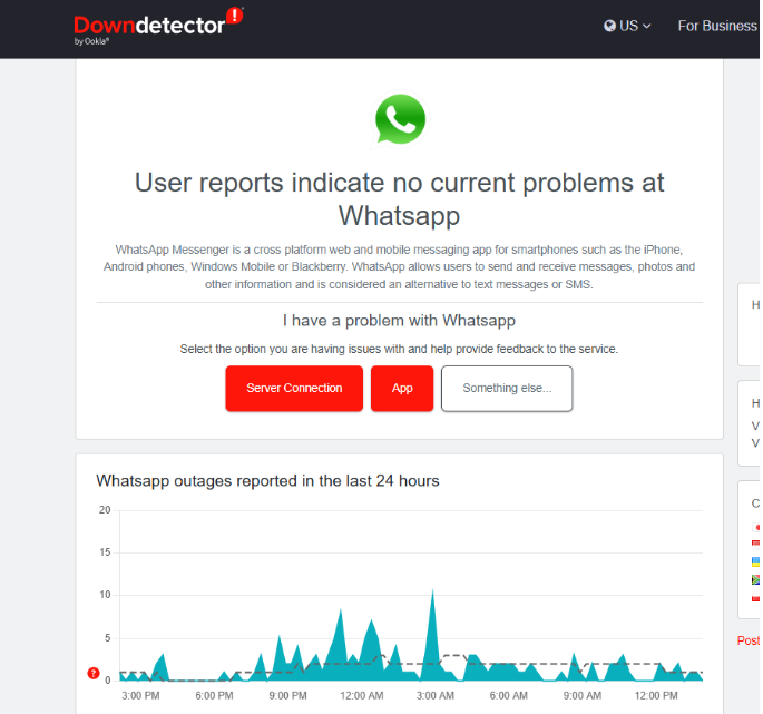 检查 Down detector 或 StatusGator 以获取最新报告。截至目前,WhatsApp在大部分地区正常运行。