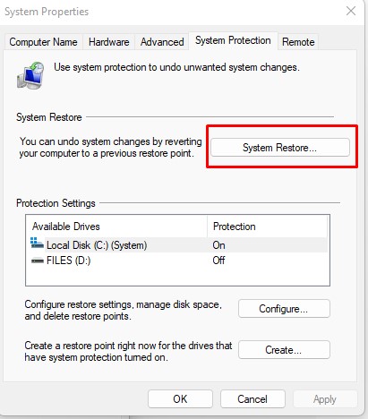 1)单击“开始”按钮和类型“系统还原”在搜索框上,然后点击“进入”钥匙。