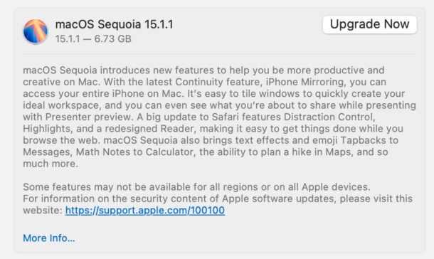 Apple 发布了 MacOS Seqouia 15.1.1,这是一个小型软件更新,专注于 Mac 的重要安全修复。不包含任何新功能,但修复了几个经常被利用的安全问题,使这些重要更新可以安装在您的 Apple 设备上。