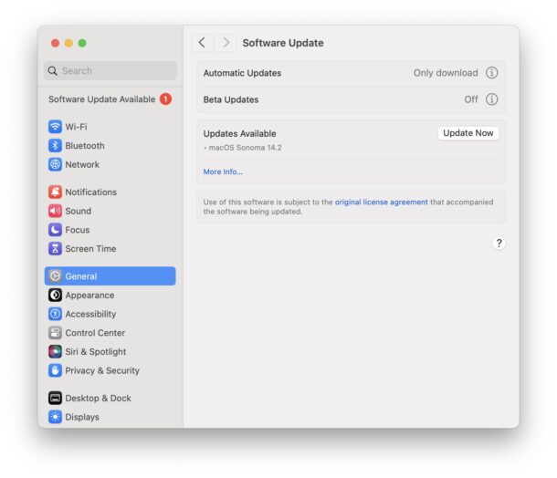 - 单击“立即更新”以安装 MacOS Sonoma 14.2 的更新