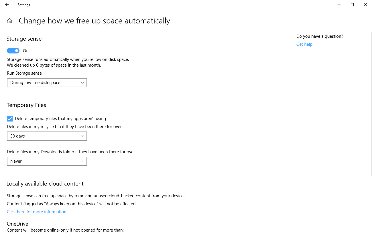 如果您的电脑只有少量可用存储空间(例如平板电脑或超级本),那么您会发现存储空间很快就被填满,从而减少了可用于文件和文档的空间量。 Windows 可以通过删除旧文件和临时文件来自动清理空间,并且它使用名为“存储感知”的功能来实现此目的。您可以通过打开“设置”,然后导航到“系统和存储”来激活存储感知。单击“更改我们释放空间的方式”会自动显示各种选项。例如,您可以选择存储感知运行的频率,从每天到仅在存储空间不足时运行。您还可以选择临时文件和“下载”文件夹中的文件在自动删除之前在电脑上保留的时间。
