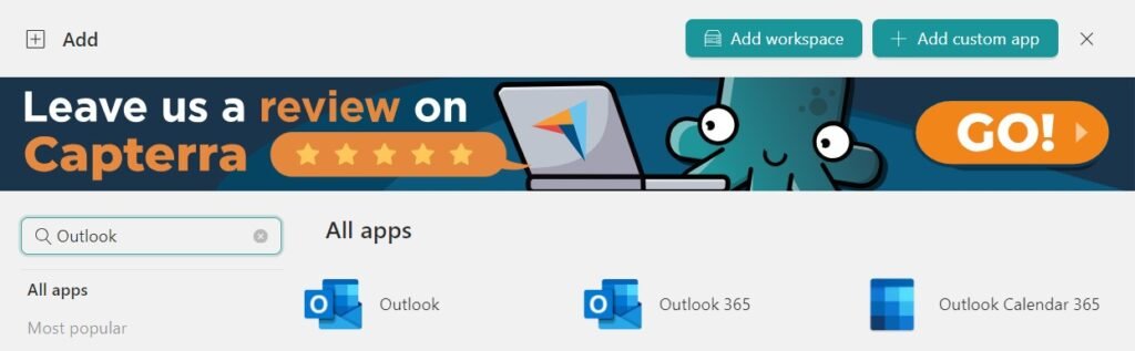 - 点击“+添加”,就是这样!该应用程序已添加到您的 Rambox 工作区!