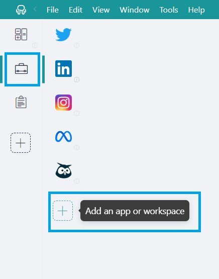 - 单击“添加应用程序或工作区”主选项卡或工作区中的按钮。