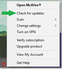 - 打开 McAfee > 检查应用程序更新