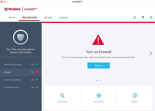 - 将 McAfee 添加到 Mac 的防火墙例外列表