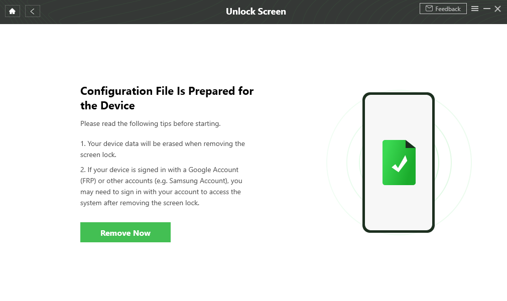 步骤4。等待DroidKit为您的设备准备配置文件。准备完成后,您将看到一个新界面。单击“立即删除“ 按钮。