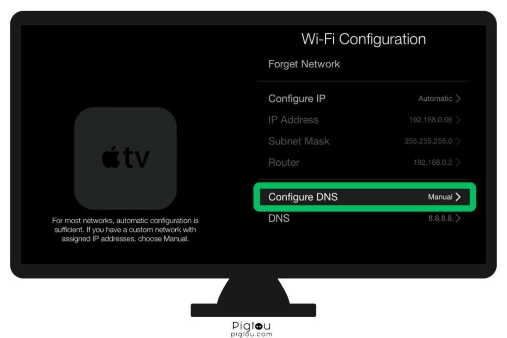要修改 Apple TV 上的 DNS,请执行以下操作: